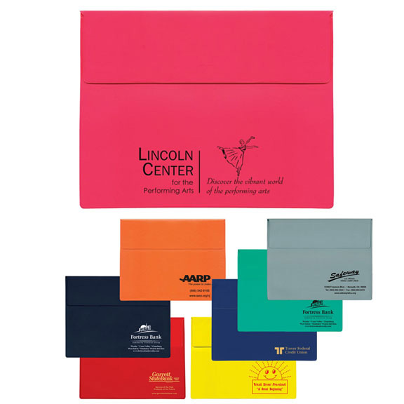• his NEW portfolio is sure to be one of our most popular. The inexpensive price, variety of colors make this the best bet for your conventions, seminars and meetings. You have an option to place a business card pocket or add velcro closure for additional cost.