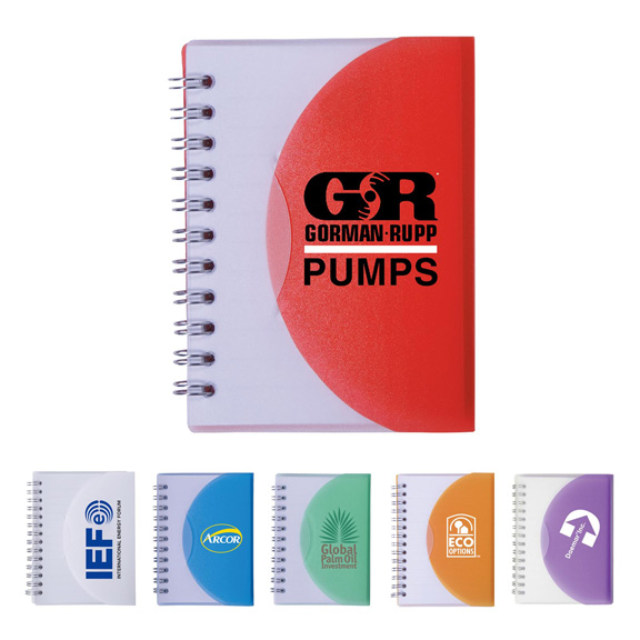 • Get it down in writing in this extra small personal journal and notebook with a two-tone cover design. This 3 inch x 4 inch spiral bound book has a translucent cover with a folding tab and 60 sheets of lined paper. Compact design stows away easily in your purse or pocket. It`s a great way to show off your brand everywhere from classrooms to board rooms. Select from six translucent colors and add your school, sports team, organizational or company logo or message to customize.