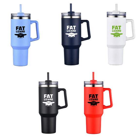 • 40 oz Big Stan Stainless Steel travel mug with handle and straw.