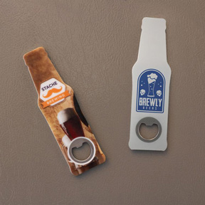 • Pop any top and store on any metal surface. Strong magnet keeps the opener within easy reach. Classic bottle shape. Metal jaw ensures durability.
