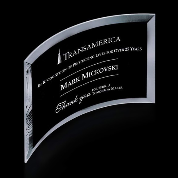 • Our classic Madison Jade Crescent Award is a staple of the recognition industry and a long standing favorite for corporate recognition. Featuring a beveled frame and available in 5 sizes.