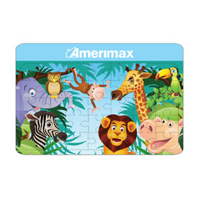 • Piece together your next promotion with our jigsaw puzzles! Ideal for teachers and students. Great for tradeshows and events. Jungle stock design. 35 piece puzzle is printed on 1/8 inch thick cardboard.